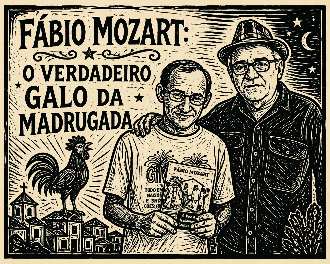 O poeta José Sóter, de Brasília, me botou o apelido de “galo da madrugada”. Fez até uma arte na IA.