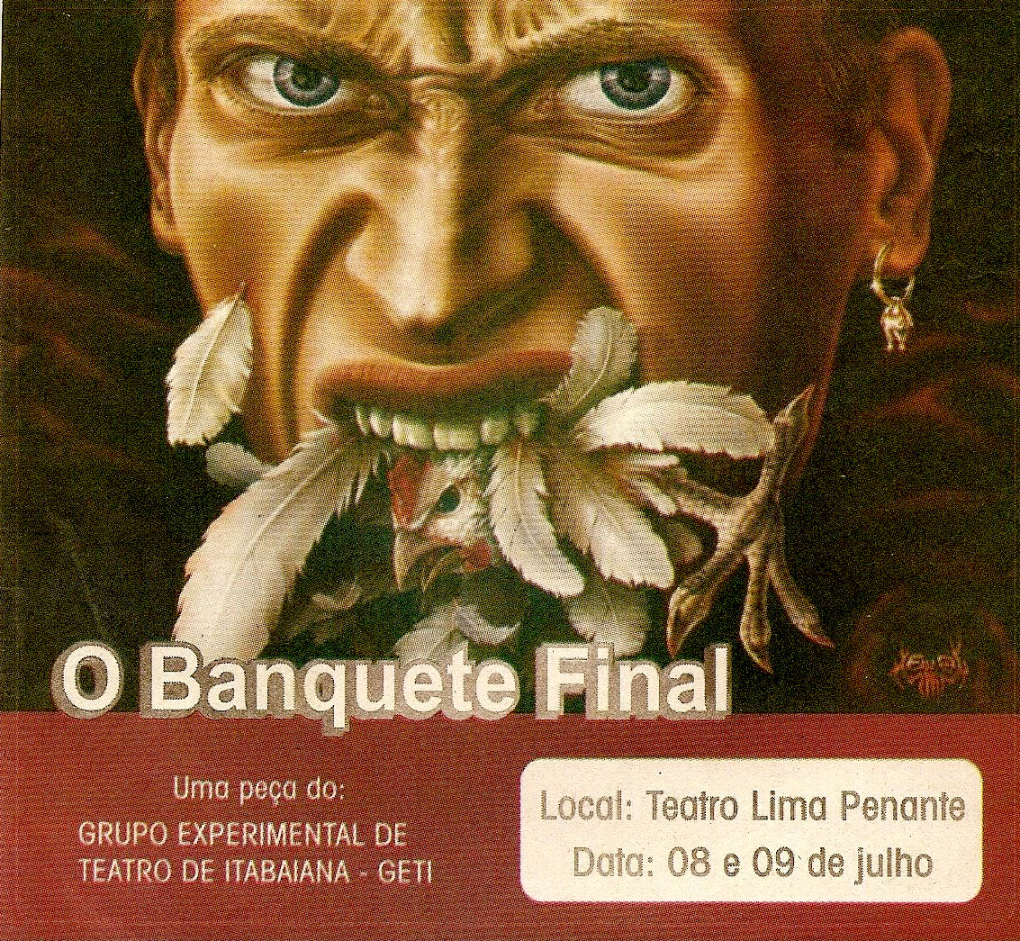 Cartaz da peça “O banquete final”, de Fábio Mozart, pelo Grupo Experimental de Teatro de Itabaiana, órgão da Sociedade Cultural Poeta Zé da Luz que comemora 50 anos de fundação.