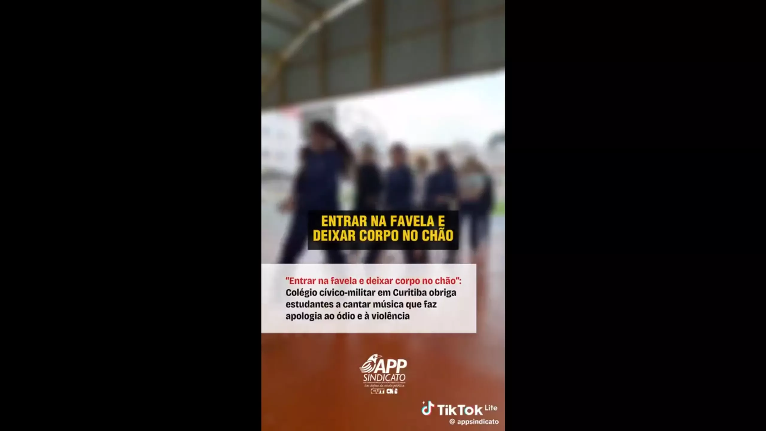 A repercussão de um vídeo em que estudantes do Colégio Estadual Cívico-Militar João Turin, em Curitiba, aparecem marchando e entoando um canto associado ao Batalhão de Operações Policiais Especiais (Bope), com apologia explícita à violência, levou o caso ao centro do debate educacional no estado. As imagens mostram alunos repetindo versos que não integram a proposta pedagógica da rede e rapidamente viralizaram nas redes sociais. O canto entoado inclui a frase: “Homem de preto, qual é sua missão? Entrar na favela e deixar corpo no chão”.