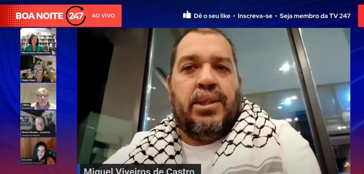 Diretamente da Jordânia e livre da prisão ilegal em Israel, o ativista Miguel Viveiros de Castro, da Flotilha Global Sumud, com destino à Faixa de Gaza mas que foi interceptada por militares do regime de Tel Aviv, concedeu nesta terça-feira (7) uma entrevista à TV 247.