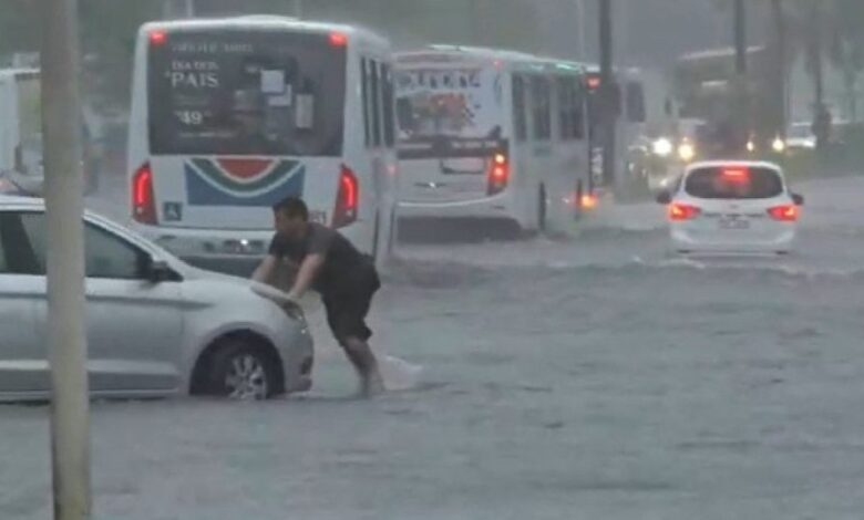 Chuva forte provoca caos no trânsito e alagamentos na capital paraibana