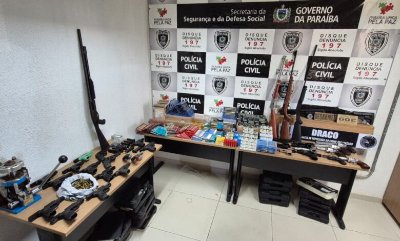 Ação policial investiga faccionados em clube de tiro na PB e resulta em apreensão de 33 armas e 5 mil munições