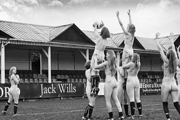 As jogadoras da equipe foram fotografadas usando apenas suas meias e chuteiras, esboçando jogadas tradicionais do rúgbi, como os tackles e os laterais.