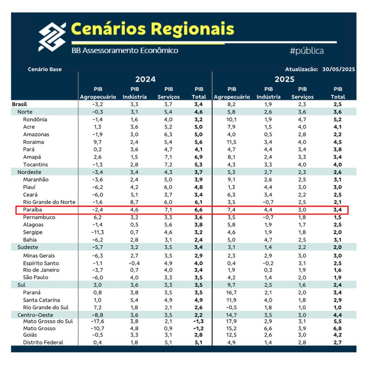 O Resenha Regional de Assessoramento Econômico do Banco do Brasil divulgou, nesta segunda-feira (2), registro da Paraíba ocupando o segundo maior crescimento industrial do Nordeste (4,4%) e o terceiro maior do Brasil, apresentando resultados acima da média nacional e regional.