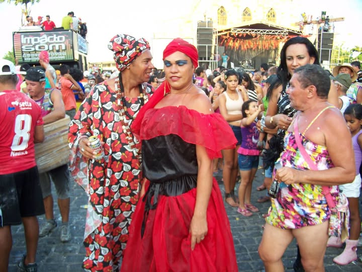 O herói macunaímico Biu Penca Preta no papel de Madame Preciosa no carnaval de Itabaiana (à direita).