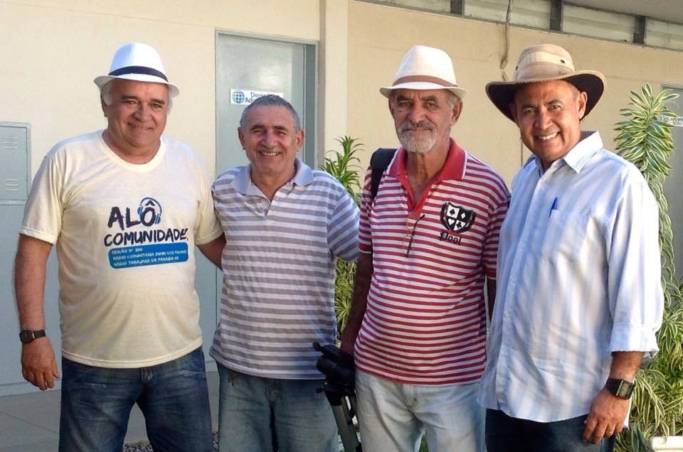 Hoje, 21 de março, completa um mês do desaparecimento dos nossos companheiros Marcos Veloso e Jacinto Moreno. Com profundo pesar, lembramos a partida de dois grandes comunicadores paraibanos. Na foto, Jacinto e Veloso ladeados por mim e pelo poeta Thiago Alves. Faremos registro dessa data no Alô Comunidade de hoje, 11 horas na Rádio Tabajara: https://radiotabajara.pb.gov.br/radio-ao-vivo/radio-fm