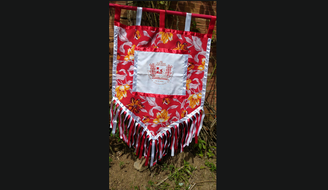 Este é o estandarte da Academia Solanense de Letras, obra do poeta e artesão Chicco Mello. Arriscado a Academia sair com seu bloco no carnaval de 2026. Estandarte já tem. Bandeira de guerra pela cultura e alegria de fazer artes.