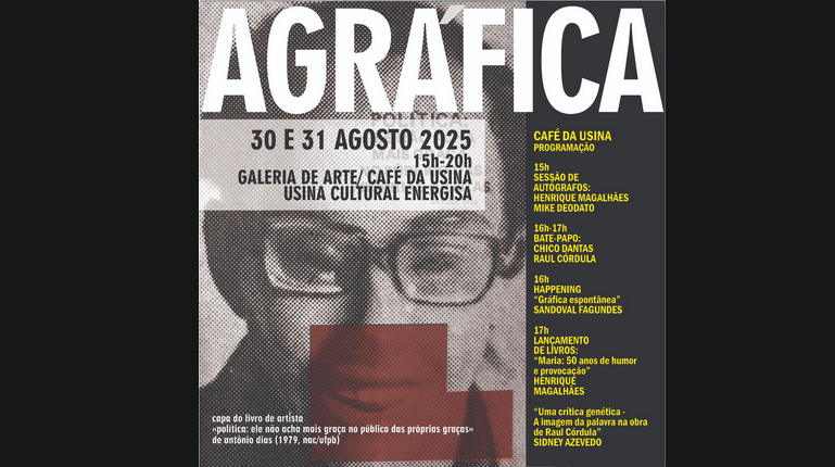 O projeto Lab Ocupação Artes Visuais apresenta a primeira edição de AGRÁFICA, feira de artes gráficas, que será realizada nos dias 30 e 31 de agosto de 2025, das 15h às 20h, na Galeria de Arte da Usina Cultural Energisa, em João Pessoa.