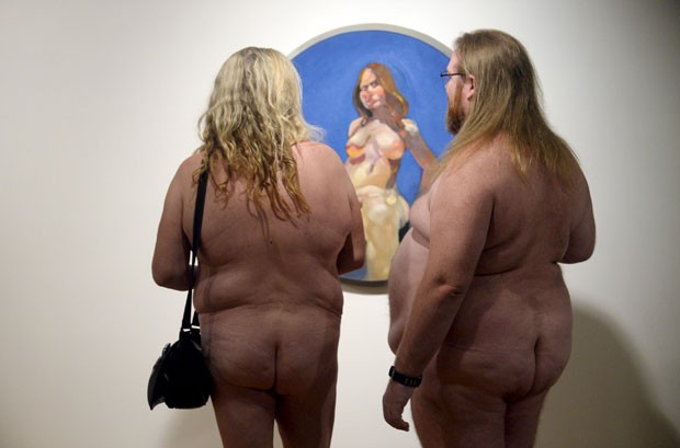 Várias pessoas participaram nus de uma visitação a uma nova exposição no museu de Kitchener, na província de Ontário, no Canadá. O nome da mostra era justamente “Ficar nu”, ou seja, os visitantes deveriam tirar a roupa enquanto viam as obras.